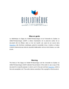 | Informations complémentaires: | Research report prepared by the Strategic Research Chair in Health and Indigenous Perspectives at the Université du Québec en Abitibi-Témiscamingue. |