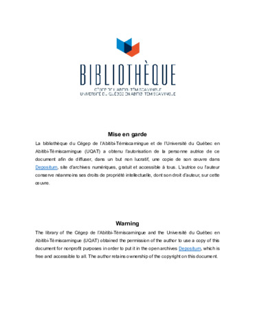 | Informations complémentaires: | Institution en extension : Université du Québec en Abitibi-Témiscamingue. |